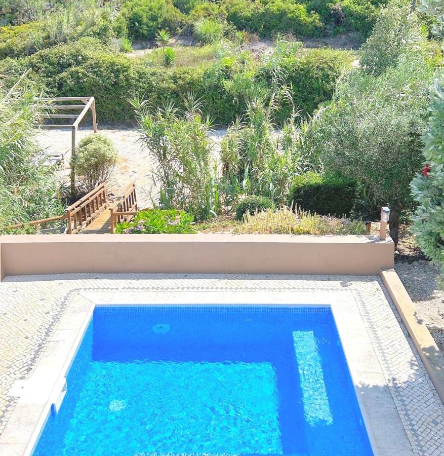 Das Zimmer befindet sich im Souterrain mit eigener Terrasse und Zugang zum Pool.